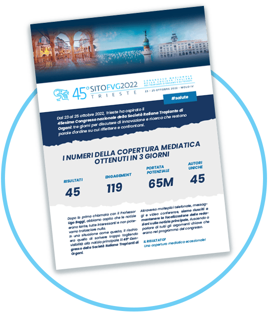 Grazie alla rete di conoscenze che abbiamo sviluppato in tutte le redazioni Nazionali possiamo garantire una copertura mediatica totale, garantendo minimo 15 Uscite Stampa in appena 30 giorni.